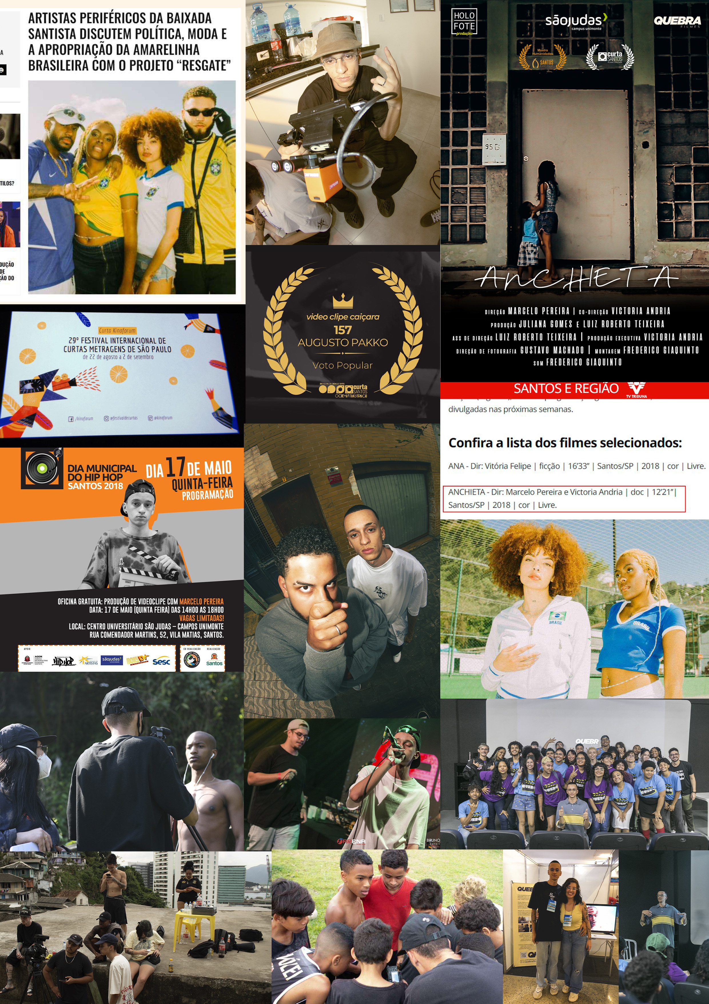 | Bacharel em Cinema e Audiovisual pelo Centro Universitário São Judas. Integrante do grupo de rap da Baixada Santista intitulado “MEMO” (@memorapsv) no qual compõe, interpreta e produz suas próprias músicas, desde 2014. Fundador da Quebra Filmes, produtora audiovisual com foco nas narrativas de periferia onde já realizou trabalhos para grandes nomes da cena como Emicida, BK’, Coala Festival, HipHopDX além de grandes marcas como Ballantines, Coca-Cola, Fortnite, Gerando Falcões entre outras. Em 2024 foi vencedor do Curta Santos na categoria “Melhor Videoclipe” com “157” do artista Augusto Pakko, um videoclipe realizado praticamente sem verba e com uma equipe 100% periférica. Montador e um dos pesquisadores do documentário "ESCUDO", filme com imagens de arquivo que reflete sobre o fim da ditadura via chacinas na Baixada Santista, como os assassinatos de MCs e a operação Escudo, segunda maior chacina de SP. Diretor do documentário Anchieta, exibido na Mostra Olhar Caiçara do Festival Curta Santos, Mostra Humanidades do Santos Film Fest e no Especial Curtas Metragens do TV Tribuna, todos em 2018. Atualmente, está em processo de pesquisa e construção o projeto "TREM" um EP Visual / Documentário em narrativa transmídia onde fala um pouco sobre luto e fugas através da arte. Com a Quebra Filmes, Marcelo busca se conectar com artistas da região a fim de viabilizar e produzir videoclipes, documentários e outras obras com foco nas narrativas periféricas. |